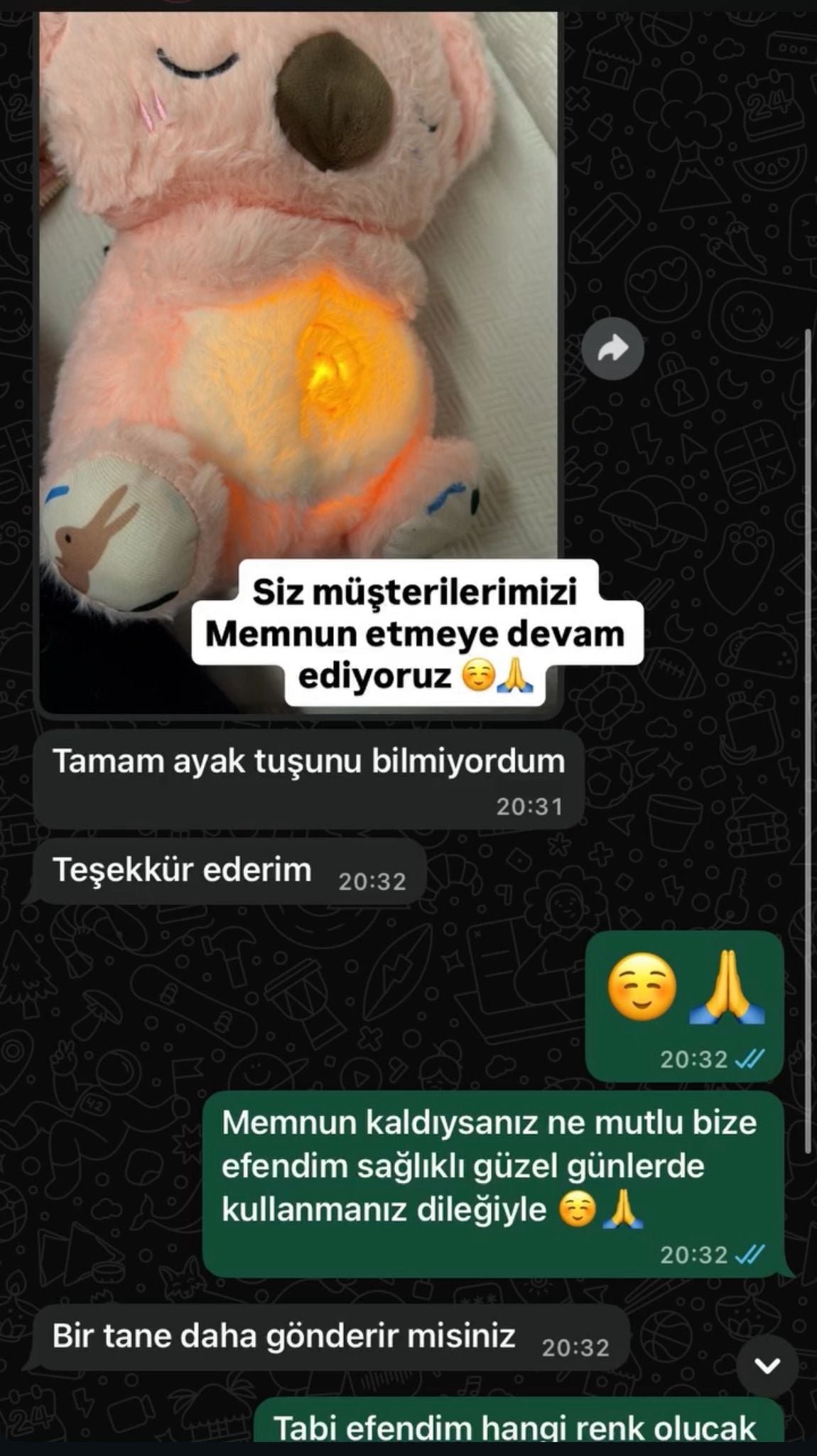 Sadece yumuşacık bir oyuncak değil, aynı zamanda sakinleştirici bir dost! Ritmik nefes alıp vermesiyle stresi ve anksiyeteyi azaltır, çocuğunuzun gece korkularını yenip kendi yatağında huzurla uyumasına destek olur.